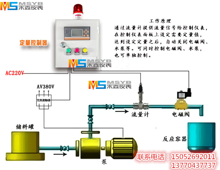 定量控制器系統(tǒng)是由流量計、流量定量控制儀、電磁閥和配電箱等裝置組成。