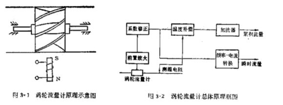 渦輪的轉(zhuǎn)速通過裝在機殼外的傳感線圈來檢測。當(dāng)渦輪葉片切割由殼體內(nèi)磁鋼產(chǎn)生的磁力線時,就會引起傳感線圈中的磁通變化。傳感線圈將檢測到的磁通周期變化信號送入前置放大器,對信號進行放大、整形,產(chǎn)生與流速成正比的脈沖信號,送入單位換算與流量積算電路獲得并顯示累積流量值;同時亦將脈沖信號送入頻率電流轉(zhuǎn)換電路,將脈沖信號轉(zhuǎn)換成模擬電流量,進而指示瞬時流量值。
