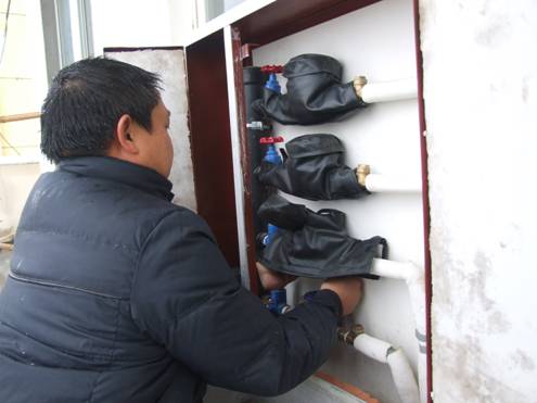 如果發(fā)現(xiàn)家中的水管已經(jīng)上凍,鋼管可用溫水澆淋,特別是彎頭處,也可用電吹風(fēng)等進(jìn)行烘烤,但不要長(zhǎng)時(shí)間在同一點(diǎn)上烘烤;鋁塑管可用毛巾包裹后慢慢用溫水澆淋,不要用火直接烘烤或用開(kāi)水急燙。對(duì)于暴露在外的供水管道,可用棉布或保溫材料捆綁,外加塑料膜密封包扎。氣溫過(guò)低時(shí),可將家中水龍頭稍稍擰開(kāi)使水流成線,這樣可減少管道、水表凍結(jié)的程度。