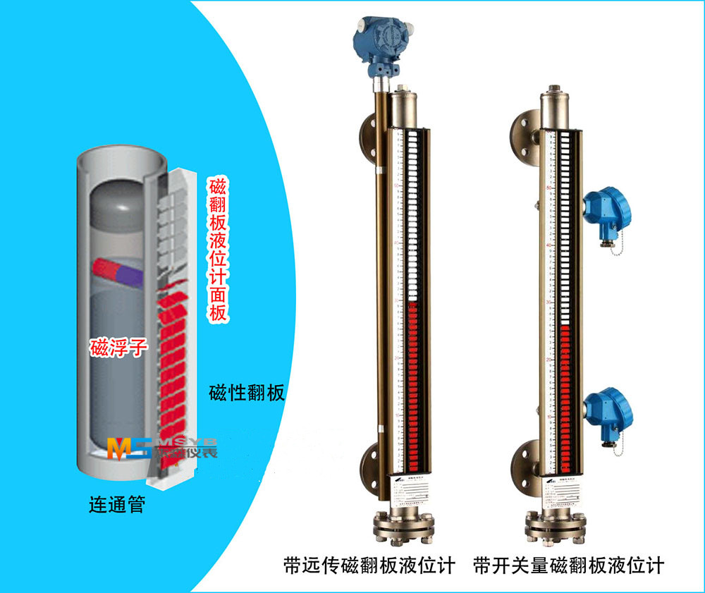 磁性翻柱(磁翻柱)液位計(jì)是根據(jù)磁極耦合原理、阿基米德(浮力定律)等原理巧妙地結(jié)合機(jī)械傳動(dòng)的特性而開發(fā)的一種專門用于液位測量的裝置。在此基礎(chǔ)上,不斷擴(kuò)大其使用范圍,延伸出多種類型的產(chǎn)品,在檢測液位的同時(shí)我們賦予它們更多的實(shí)用功能。
