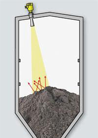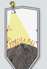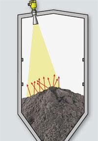 由于松散物料所形成的傾斜角,部分雷達信號被松散物料表面發(fā)射到側(cè)壁上,而且松散物料*細、反射到側(cè)壁上的雷達信號就*多。換言之,顆粒粗大的松散物料比顆粒細密的松散物料更容易檢測。一般情況下,總是用松散物料的粒度與雷達物位計的波長或者頻率之比表示兩者相互關(guān)聯(lián)的衡量尺度。當用頻率為75GHz的雷達物位計對某松散物料進行檢測時,如果松散物料的粒度細3倍則該物位計獲得的反射波相當于25GHz頻率物位計的反射波。在實際應(yīng)用中,對水泥、細面糖或者石英砂進行檢測時,人們感覺不到75GHz頻率雷達物位計與25GHz雷達物位計有什么區(qū)別,因為反射信號的強度基本相同。