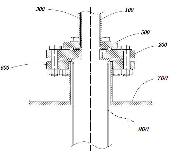 浮筒、容器以及連接用的法蘭等的材質(zhì)多為金屬材料,當(dāng)被測(cè)液體為腐蝕性液體時(shí),為防止被測(cè)液體腐蝕浮筒或者連接法蘭,造成安全事故的發(fā)生,通常需要采用內(nèi)襯設(shè)計(jì)。在傳統(tǒng)的頂裝式磁翻板液位計(jì)中,浮筒內(nèi)的內(nèi)襯通常采用翻邊工藝,在浮筒靠近容器的一端形成一個(gè)環(huán)形翻折部。但受限于浮筒形狀、尺寸以及內(nèi)襯材料的尺寸和特性影響,該翻折部的翻邊密封面無(wú)法做到很大,加上容器開口通常是大于該翻折部所覆蓋的區(qū)域,因此造成了容器開口與翻折部以外的金屬面(如法蘭的表面)相通,從而容易導(dǎo)致這些金屬面受腐蝕,易造成安全事故,給帶來(lái)麻煩。